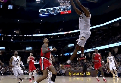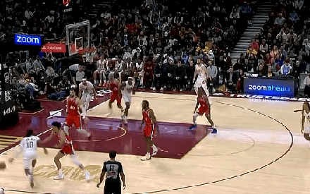 卡马拉冲抢前场板完成单手补扣,克林根空位三分手起刀落