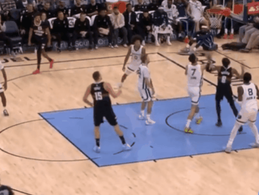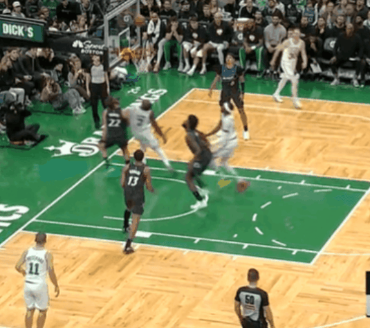 布朗杀入禁区吸引两人防守送妙传,米诺特双手暴扣肆虐篮筐