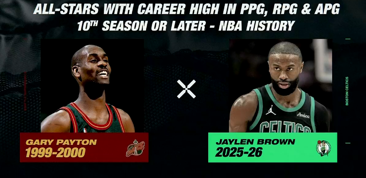生涯第10赛季得分篮板助攻创新高的全明星:佩顿和杰伦-布朗