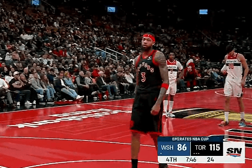 布鲁克-洛佩斯全场仅出战5分钟,投篮4中1得到3分2盖帽