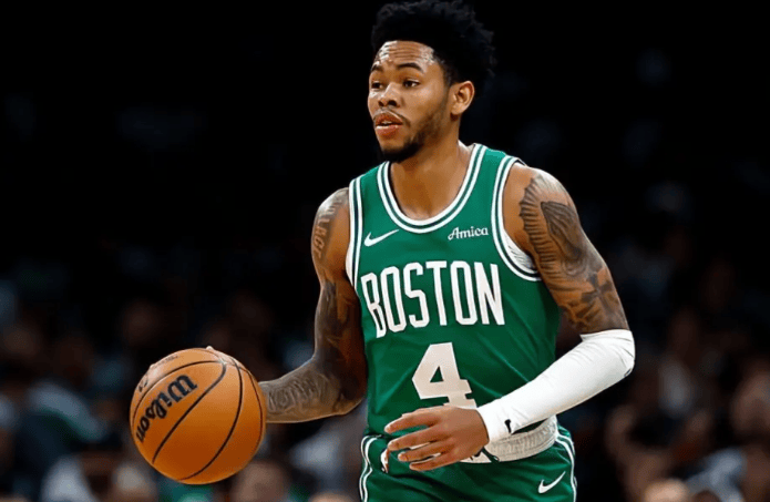 布朗快攻反击无惧对抗滞空上篮强硬打进2分,首节已砍下7分