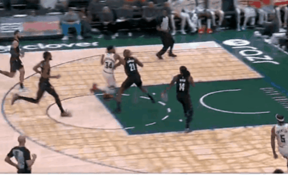 字母哥大步流星直冲篮下,扛着对手强硬打进2分