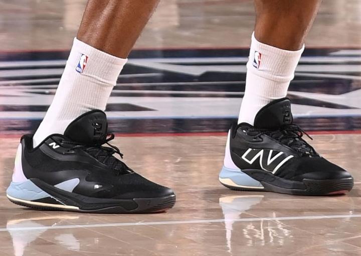 哈登穿着地狱猫配色Harden.10,砍下32分4篮板10助攻4抢断