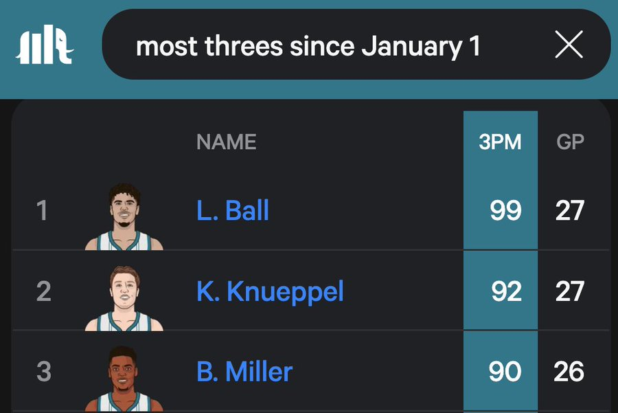 2026年以来三分命中数最多球员:三球、克尼普尔、米勒