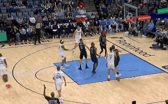 申京突破被切球失误出界,火箭还剩3分钟落后国王10分