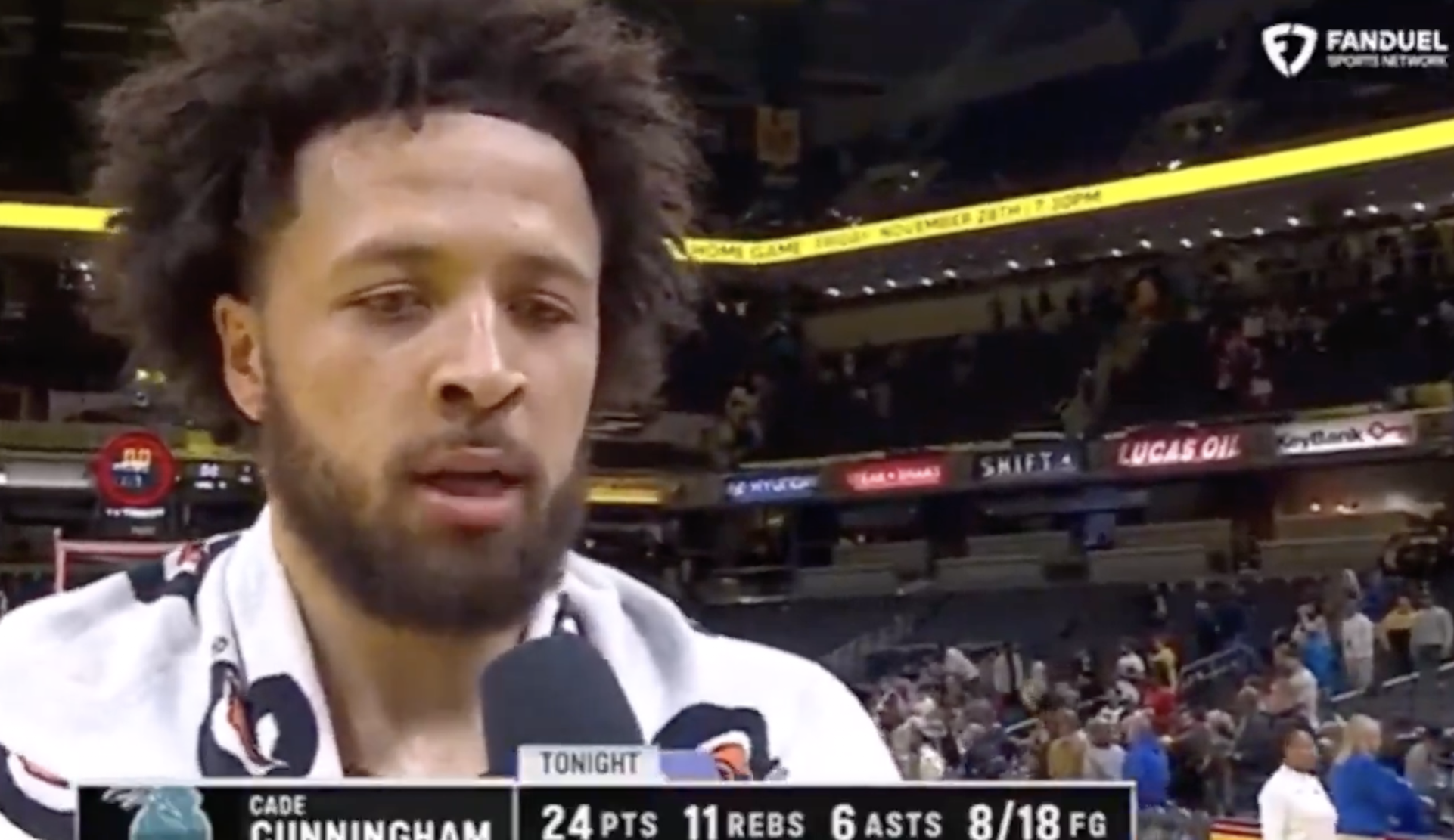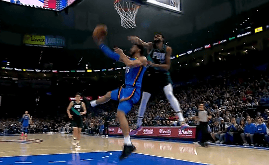 亚历山大一挑二过掉防守再打进,首节已经6中5砍下15分2抢断