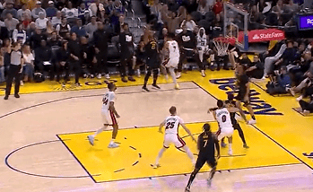 霍福德底角三分颠进篮网,勇士第三节领先热火11分