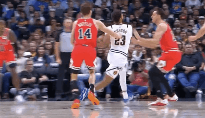 卡梅伦-约翰逊加速突破飞身上篮,遭布泽利斯追身大帽扇飞