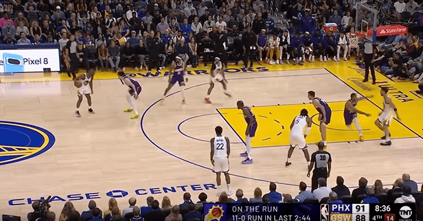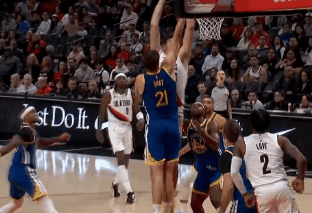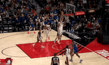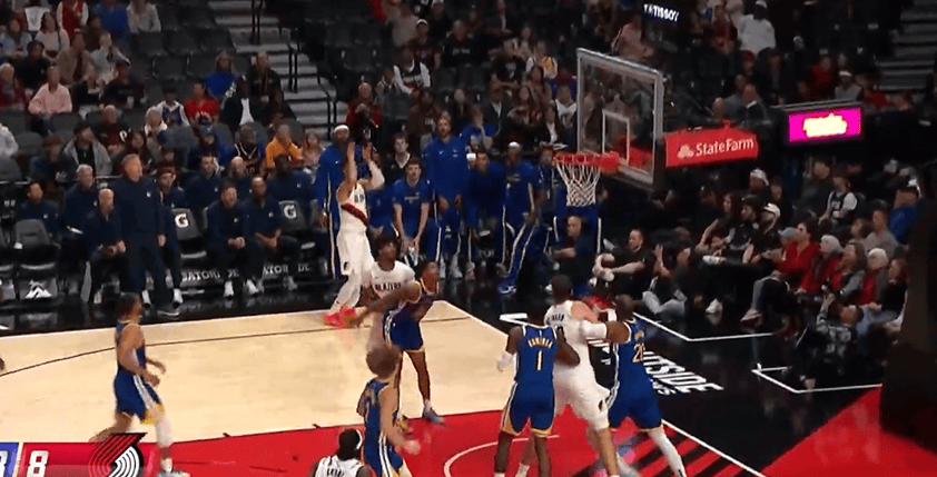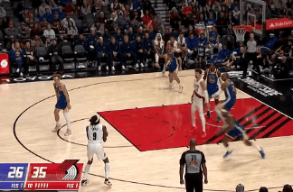 格兰特追身三分投进,开拓者五小阵容领先12分打停勇士