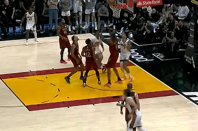 文班杀入禁区欲上篮,特雷-琼斯站稳位置造成前者进攻犯规