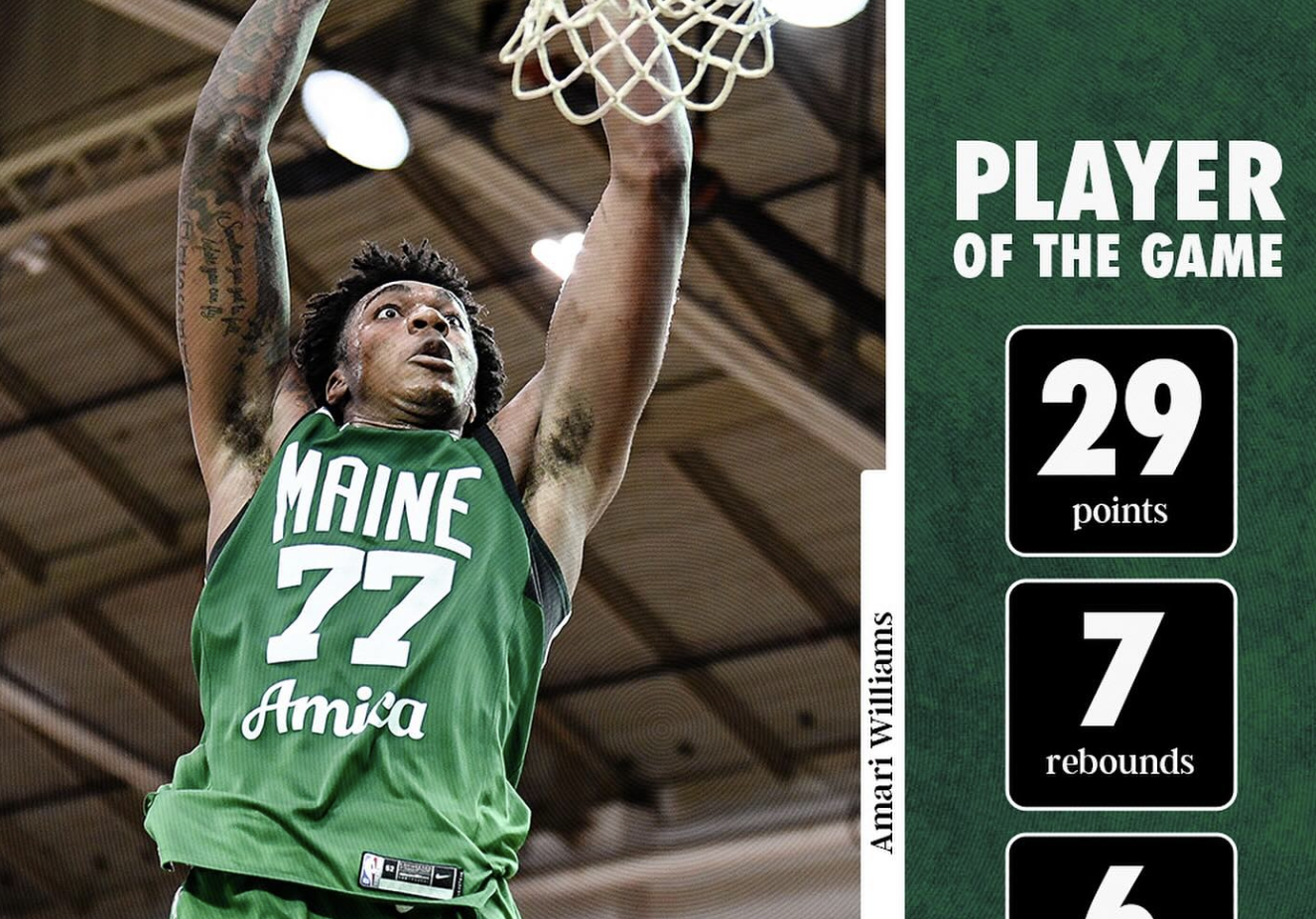46号秀阿马里-威廉姆斯今日在G联赛砍下29分7篮板6助攻5盖帽
