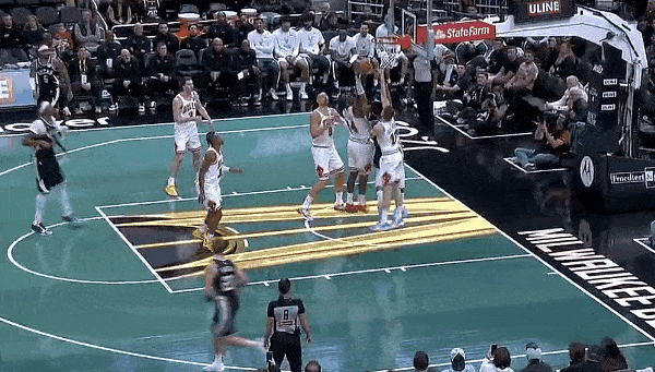 字母哥突破冲框,公牛两人放弃防守目送字母哥暴扣得分