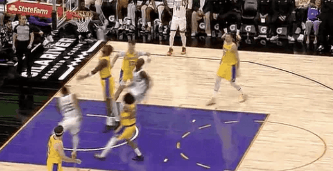 克内克特接球超远三分强投命中,湖人已领先太阳9分