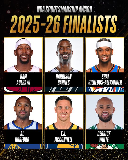NBA公布本赛季体育道德风尚奖候选名单:SGA,阿德巴约入榜