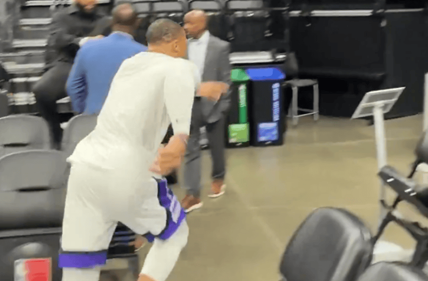 威少今日赛前超远三分一箭穿心,随后大步流星跑回更衣室