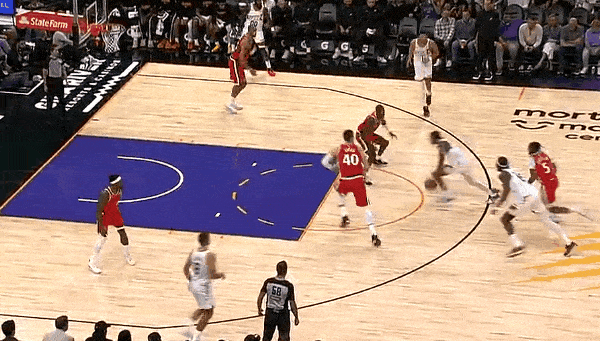 库兹马突破转身送妙传,波蒂斯接球轻松上篮得分