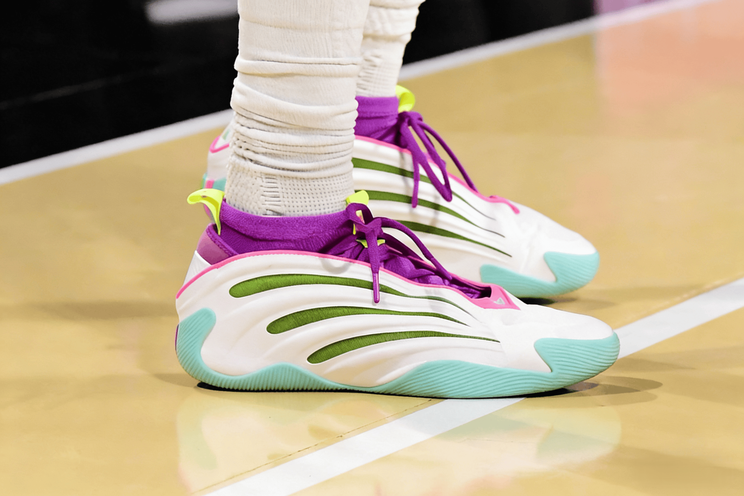 杰伦-威廉姆斯穿着白紫色Harden.9,得到20分5助攻2抢断