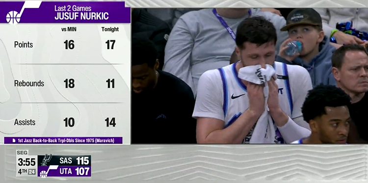 全面表现!优素福-努尔基奇全场拿到17分11篮板14助攻