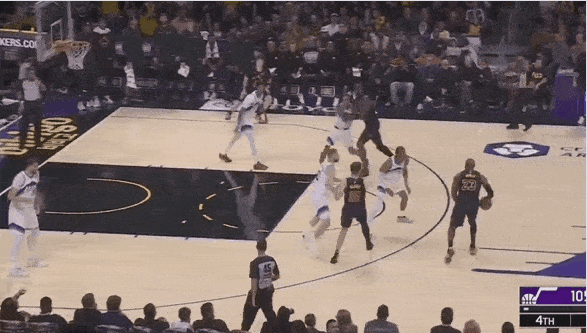 助攻-1!詹姆斯妙传艾顿,后者没搁进但自己点进