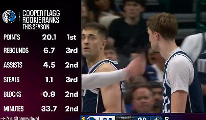 弗拉格新秀数据:得分第一、篮板第三、助攻第二、盖帽第二