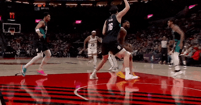 开拓者官推晒图:杨瀚森在低位打的风生水起
