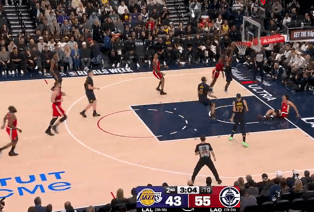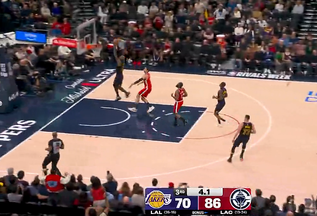 文森特过掉防守上空篮不中,海斯补篮打进还落后快船10分