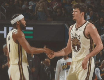 库明加外线接球出手连中两记三分,勇士领先鹈鹕3分