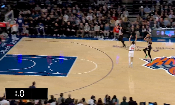虎扑布朗骑马射箭超远三分压哨投进,掘金首节28-26领先