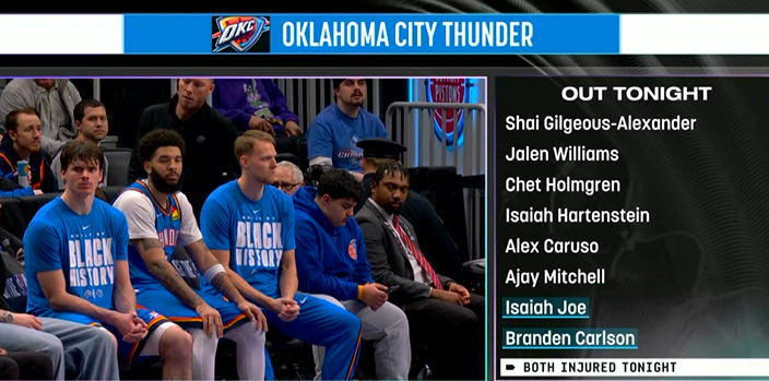伤兵满营!今日乔和卡尔森也受伤,雷霆伤病名单已达8人