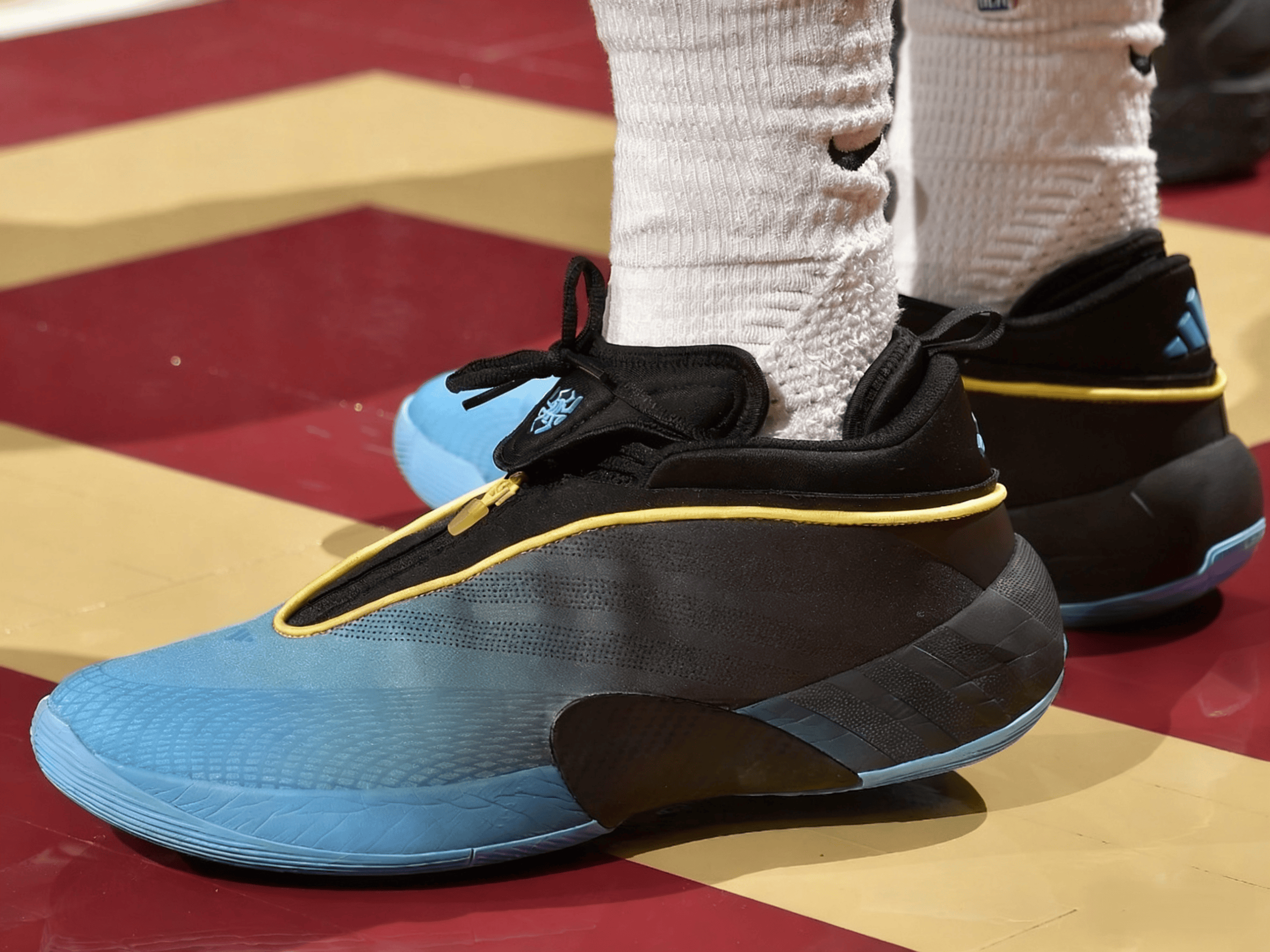 米切尔穿着蓝黑渐变色米切尔7,得到17分3助攻3抢断