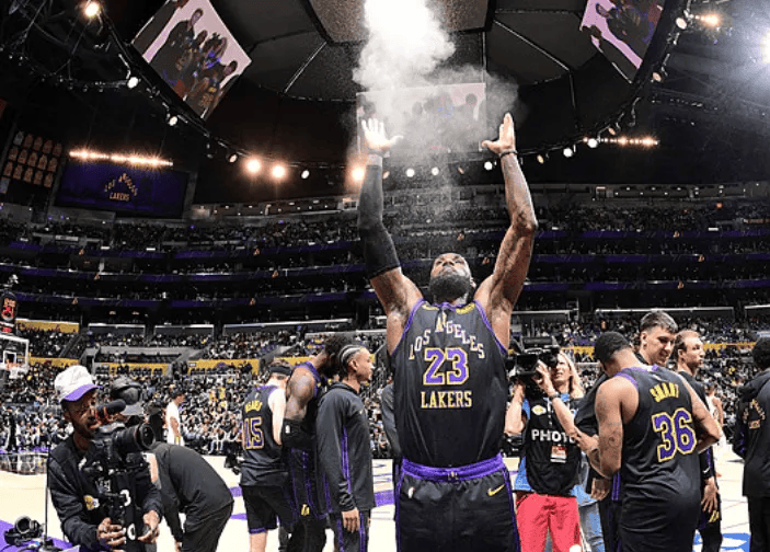 詹姆斯后转身翻身跳投命中,超越贾巴尔登顶历史进球榜第一