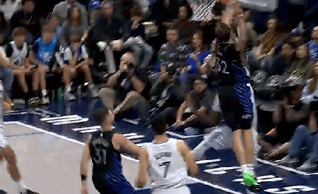 约基奇轻松转身过掉尤班克斯,垫步起飞上演双手挂框飞扣