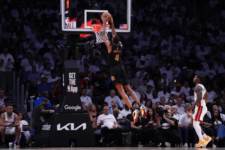 马卢阿奇提上弧顶挡拆顺下,高高跃起完成双手暴扣