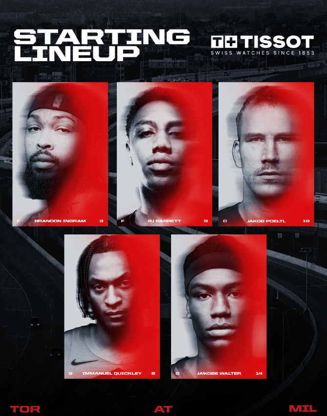 猛龙首发:英格拉姆、巴雷特、铂尔特尔、奎克利、沃尔特