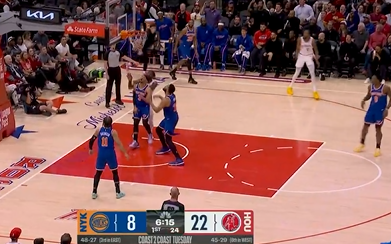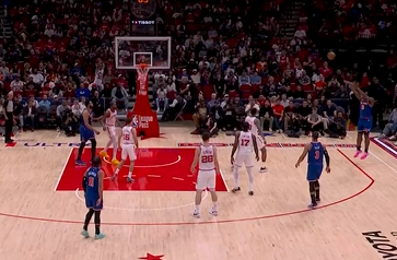 阿奴诺比压哨三分投进,半场战罢尼克斯落后火箭13分