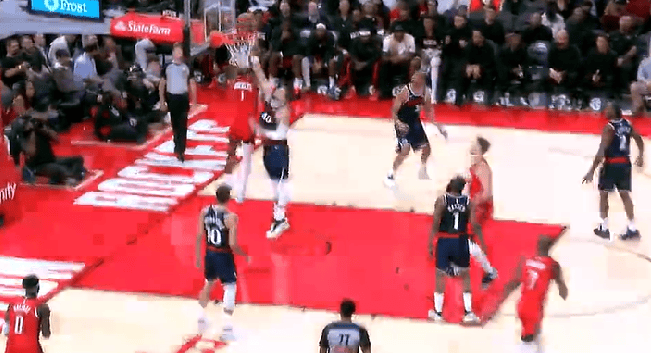 申京直塞妙传助攻阿门-汤普森,后者接球强起隔扣祖巴茨
