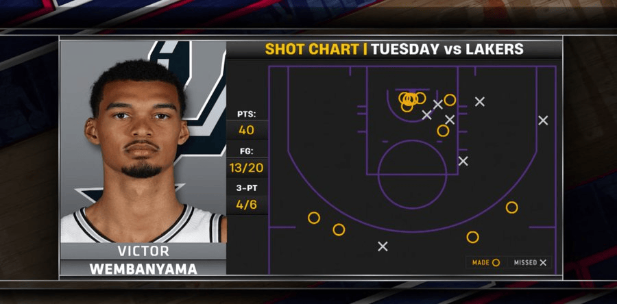 26分钟砍40+12!美媒晒文班亚马投篮分布图:👾