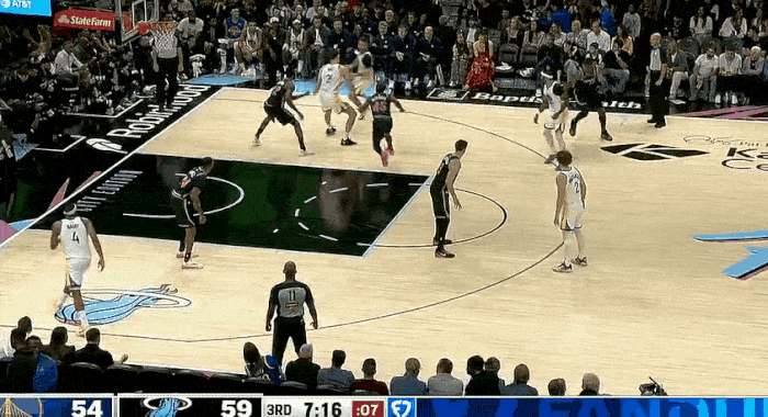 小佩顿空切接球飞身上篮打进,勇士落后热火3分