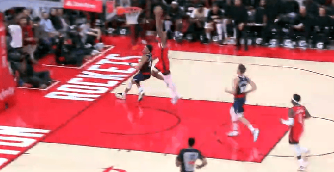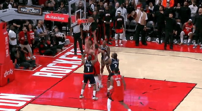 阿门-汤普森抢断反击双手暴扣,火箭反超3分打停快船