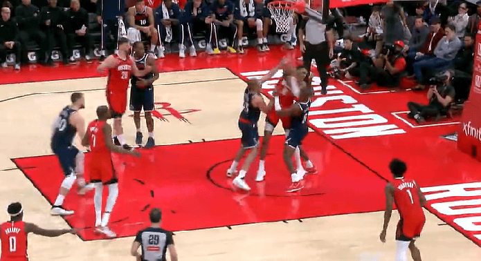 史密斯抢板一肘打到邓恩面部6犯离场,火箭挑战失败