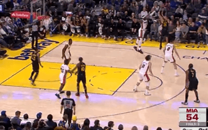 库里次节末找回手感连中2记三分,勇士领先热火6分