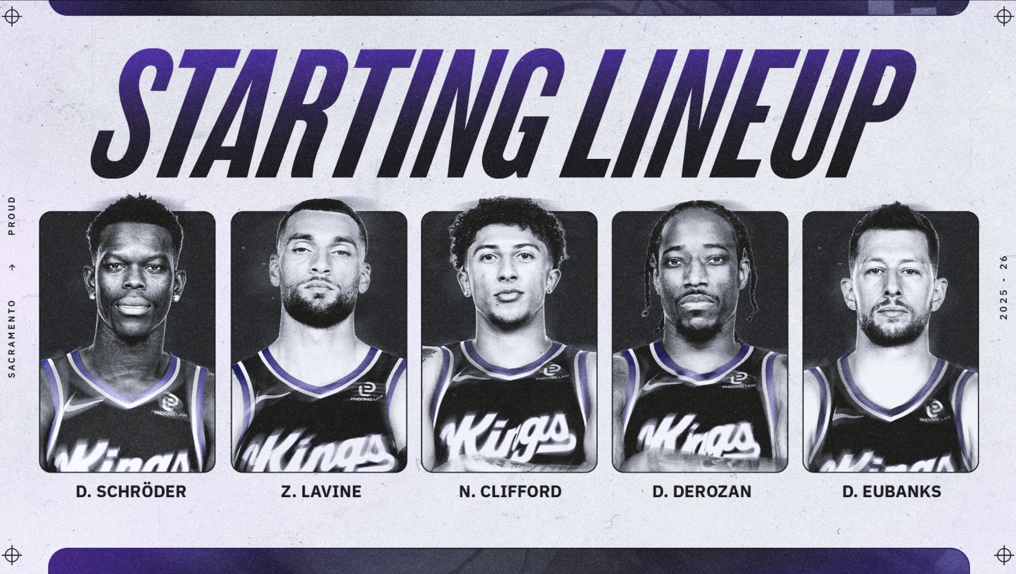 国王首发阵容:施罗德、拉文、克利福德、德罗赞、尤班克斯