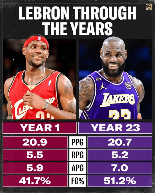 美媒对比詹姆斯首季&本季数据:20.9+5.5+5.9/20.7+5.2+7.0
