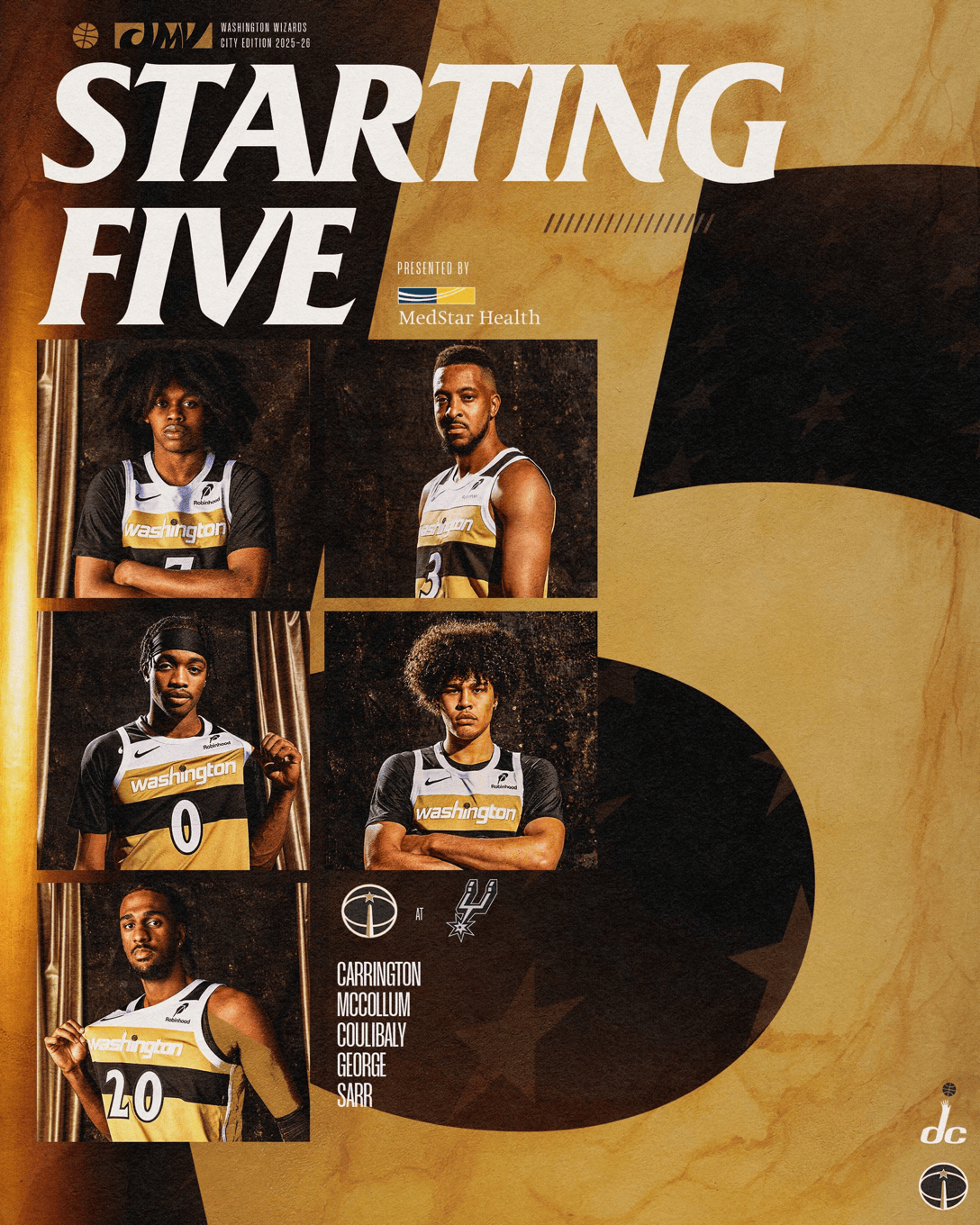 奇才首发:卡林顿、麦科勒姆、库利巴利、乔治、萨尔