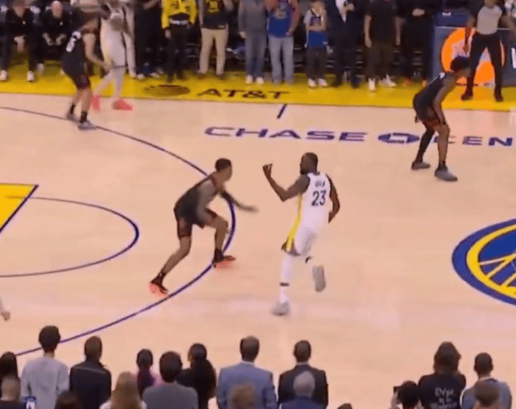 最后一回合追梦指挥波杰上来给库里做掩护,但后者未执行