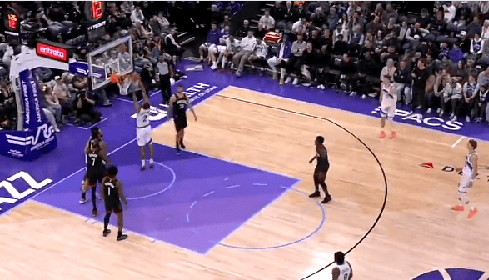 申京攻守转换接阿门助攻,大跨步杀到篮下上篮打进