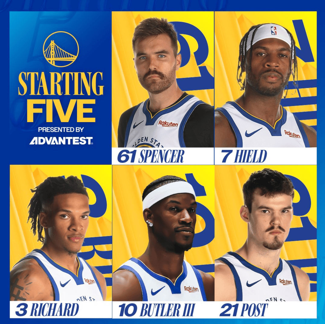 勇士今日首发:斯潘塞、希尔德、理查德、巴特勒和波斯特