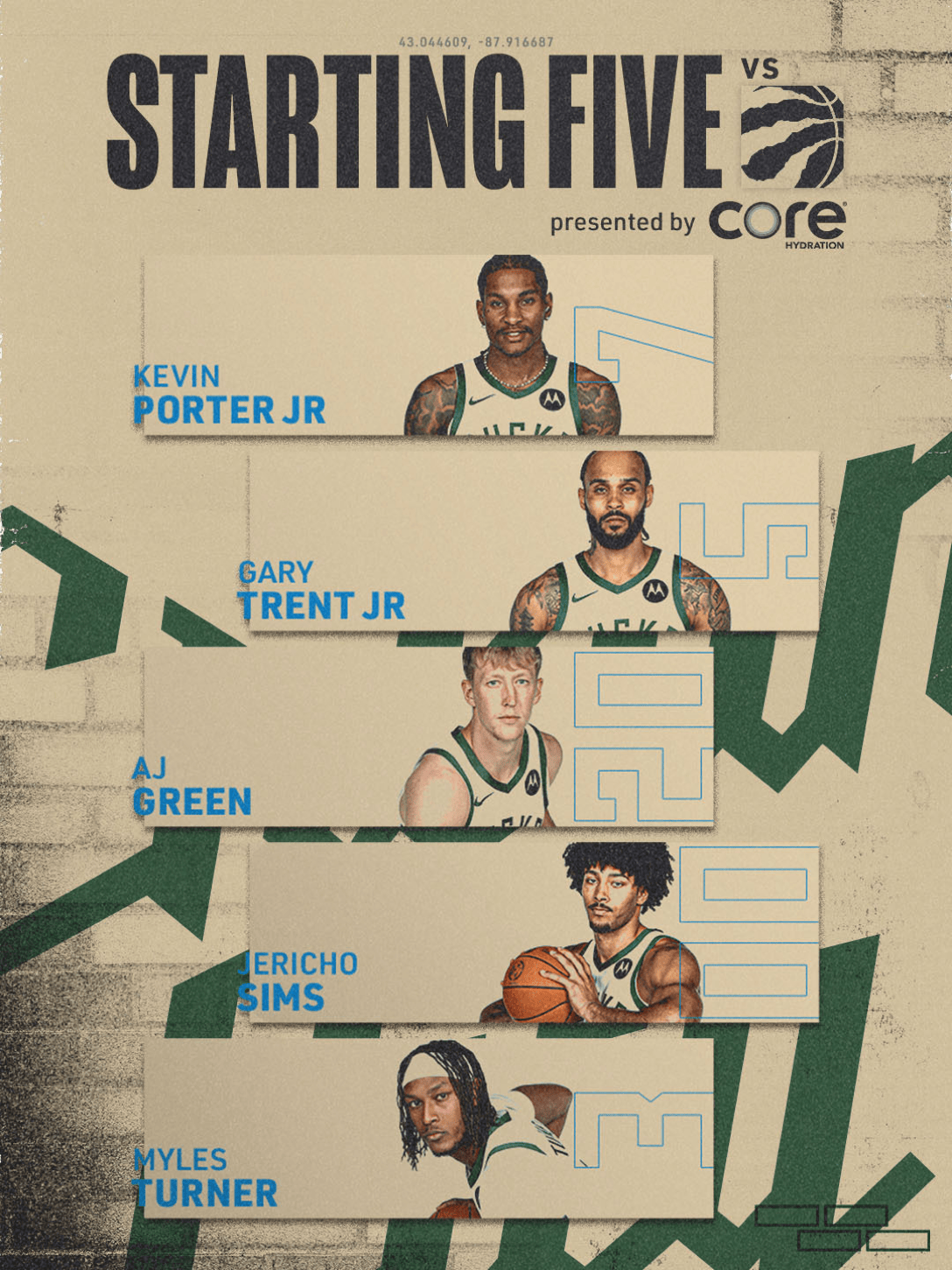 雄鹿今日首发:小波特、特伦特、AJ-格林、西姆斯、特纳