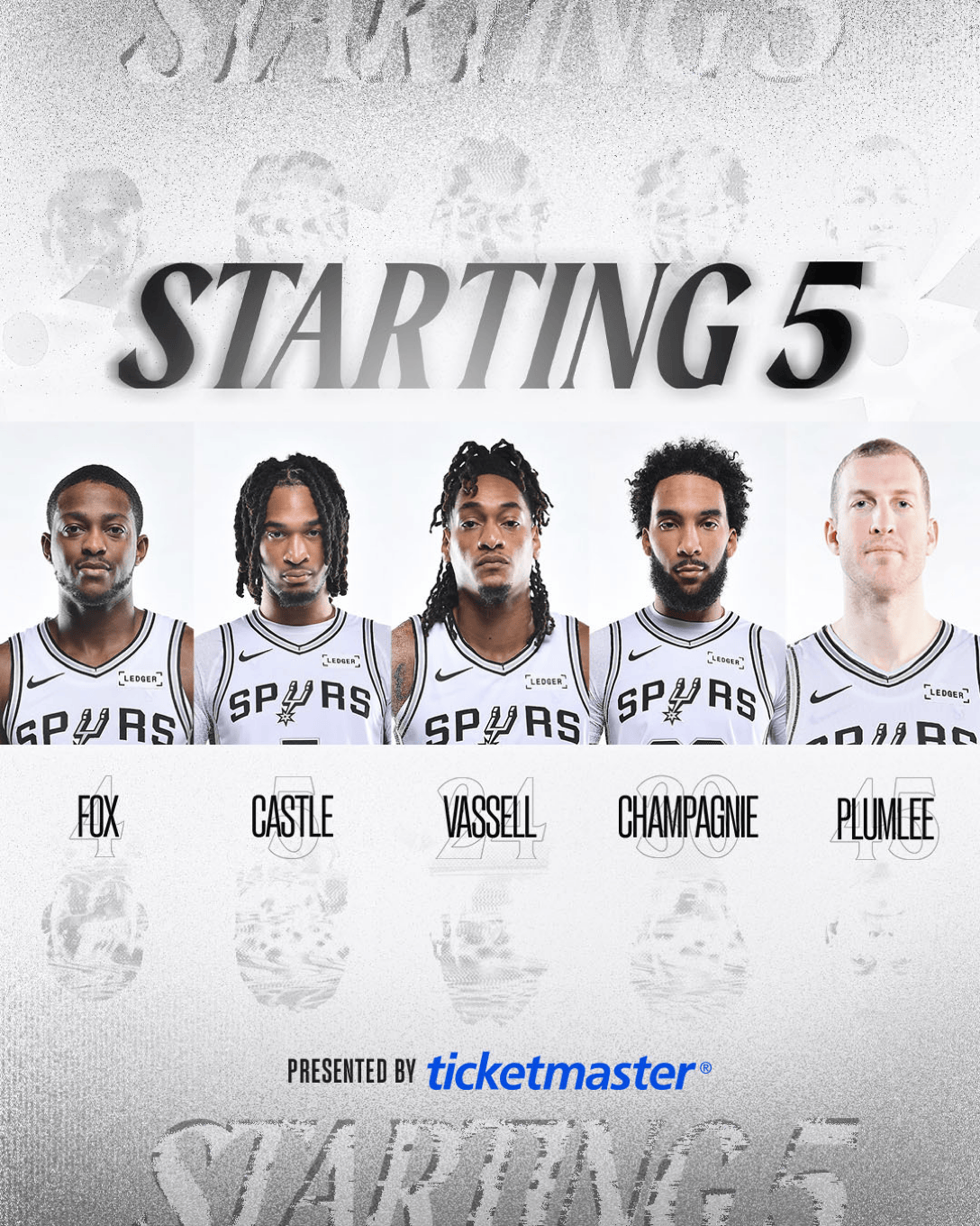 马刺首发:福克斯、卡斯尔、瓦塞尔、尚帕尼、普拉姆利