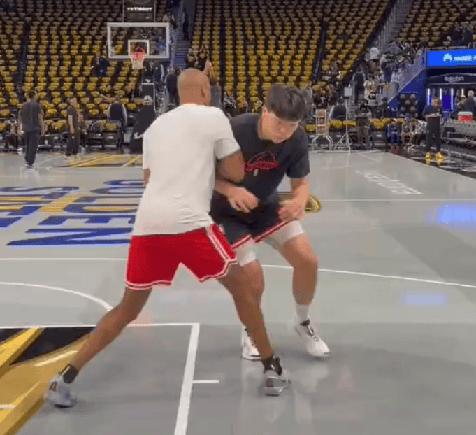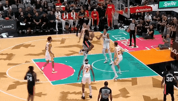 虎扑福克斯突破与波尔津吉斯空中对抗,折叠上篮打进2+1